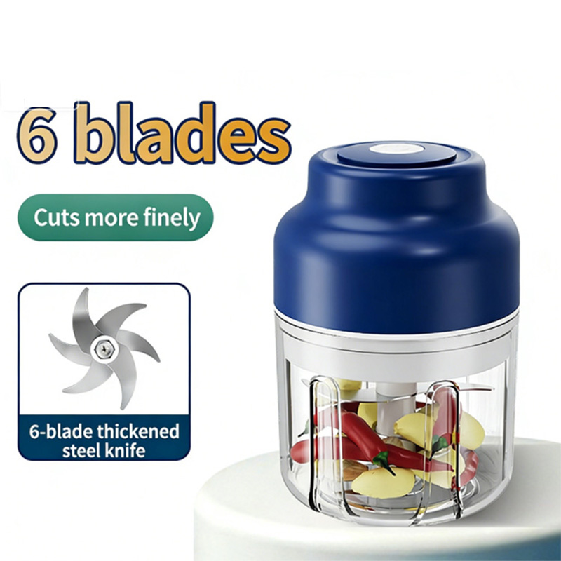 This electric garlic and vegetable mincer is a versatile kitchen assistant, combining multiple functions with high efficiency. Equipped with a powerful motor and a stainless steel three-blade design, it can finely grind garlic in seconds, effortlessly handle vegetable scraps and various meat fillings, eliminating the hassle and spice of manual chopping. Its compact design saves space, and the one-button operation is simple and intuitive, making it easy for both the elderly and children to use. Suitable for both household and small commercial settings.