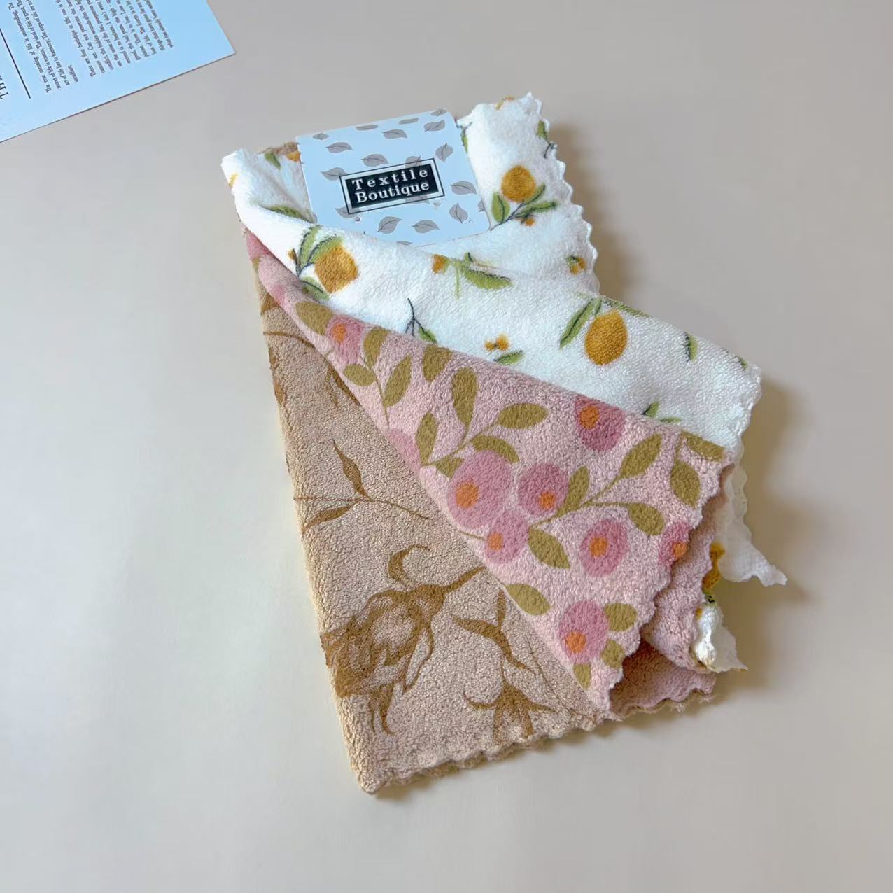 Clean Household Thickened Printed Square Coral Fleece Kitchen Cloths 3PCS |